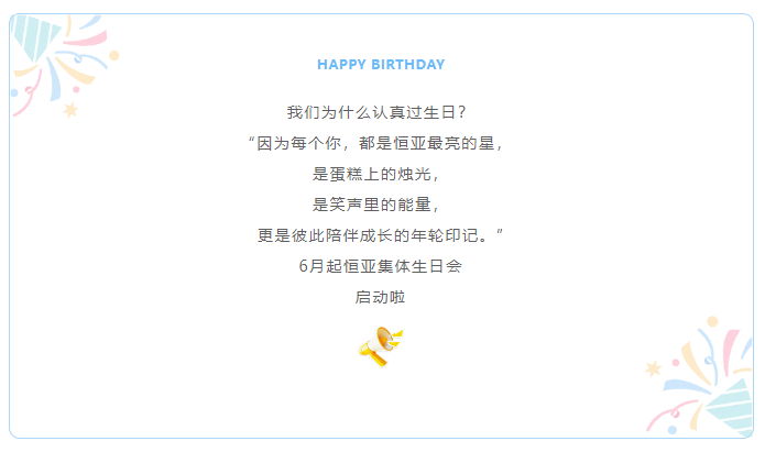 你是恒亚最亮的星,我们是彼此陪伴成长的年轮印记,生日快乐寿星们!