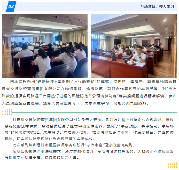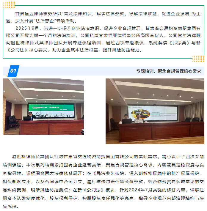 高级合伙人温世桥律师团队四度开讲,为甘肃省交通物资商贸集团有限公司注入合规新动能