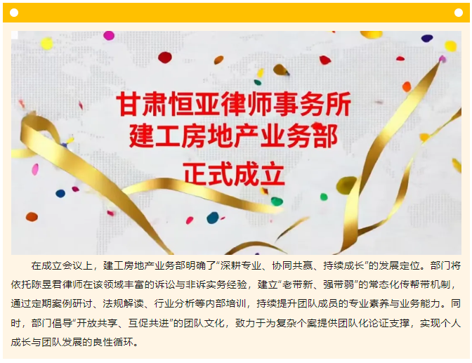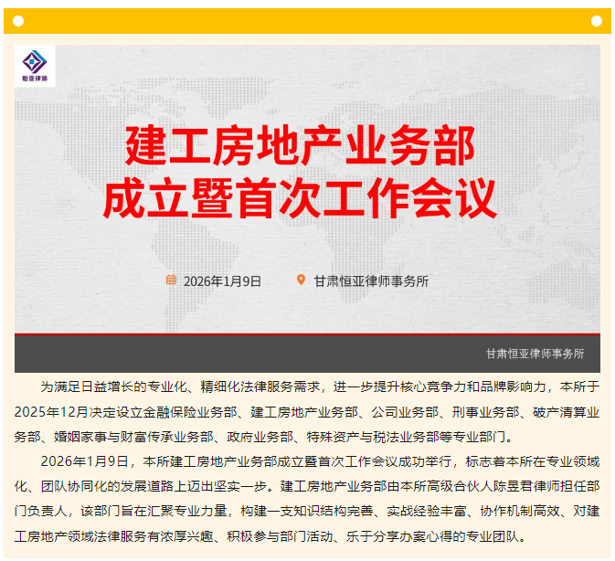甘肃恒亚律师事务所建工房地产业务部正式成立!