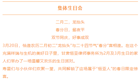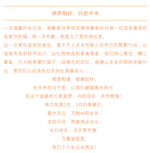甘肃恒亚律师事务所2-3月生日会温情举办