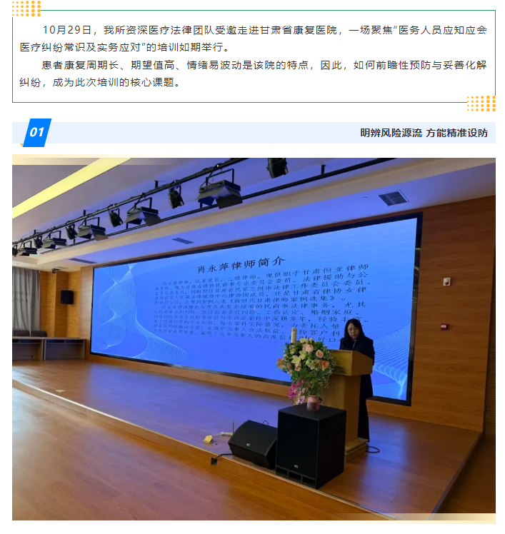 肖永萍律师为甘肃省康复医院针对医疗纠纷开展专题培训