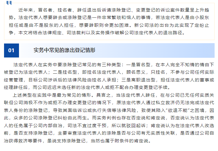 新公司法下破解法定代表人的退出路径—法定代表人的涤除登记浅析!