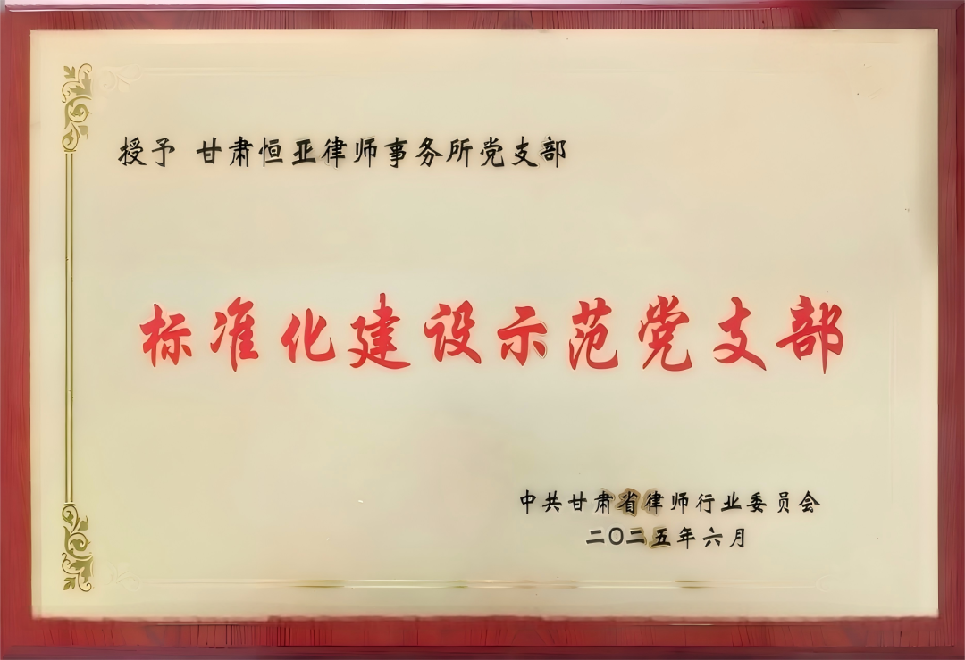 荣获中共甘肃省律师行业委员会““全省律师行业标准化建设示范党支部”荣誉称号